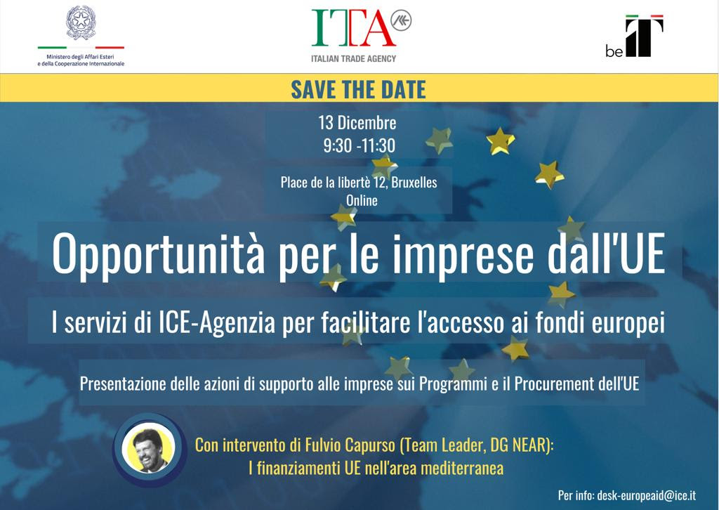 "ICE PRESENTA: LE OPPORTUNITA’ DALL’EUROPA PER LE IMPRESE ITALIANE", 13 DICEMBRE 2022, 09:30-11:30, BRUXELLES E ONLINE