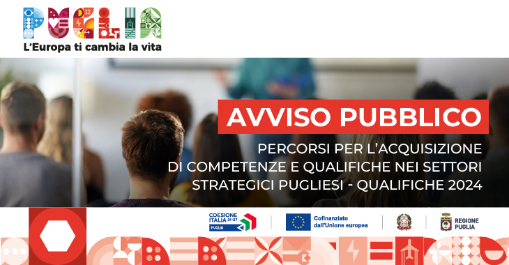 Avviso pubblico per il finanziamento di percorsi finalizzati all’acquisizione di competenze e qualifiche nei settori strategici pugliesi - Qualifiche 2024
